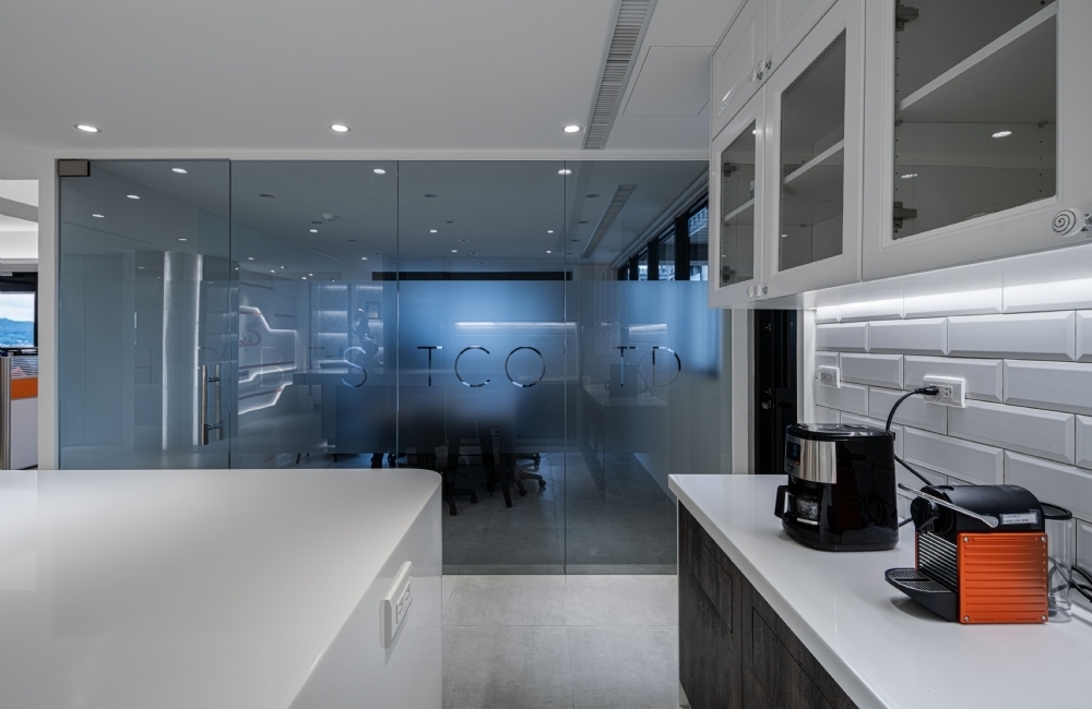 入口處的線性設計象徵著公司的產品,像電路板一樣貫穿辦公區域。通過設計的指示,參觀者被自發地引導到展示區,獎盃象徵著公司的團隊合作精神。整體白色和時尚的空間以及儲藏室的深色木製色彩營造出視覺張力。隨著材料和紋理的對比,為空間增加了更多的層次,辦公室的不同部分被框起來,沒有傳統的隔離牆。黃褐色的鏡子、玻璃和間接照明使空間更加寬敞。設計師設法保持空間開放,同時保留一些隱私,營造出寬敞而精緻的辦公氛圍。